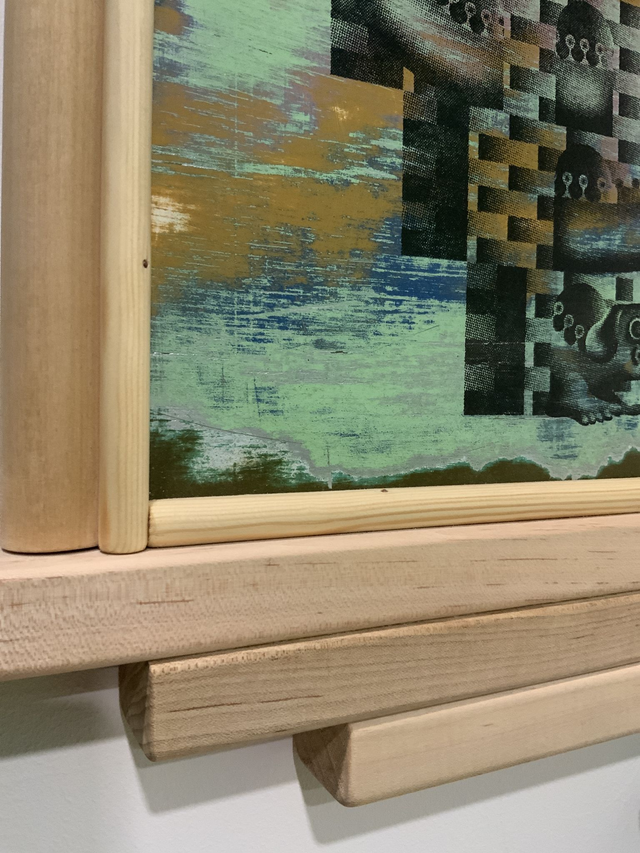 The artwork is a screen print on top of a hand made painted background, hand framed in maple wood.