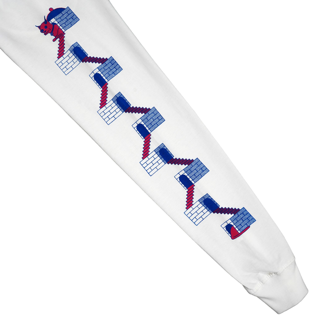 'Quonch' Long Sleeve T-Shirt - handprinted by myself at my studio in Margate. Featuring a front print of a Quonch (a protective feline spirit) and sleeve prints of the Quonch guarding the eternal staircase.